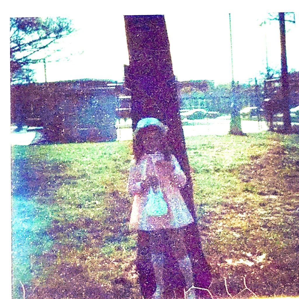 And here’s me – a Polaroid taken in my too-short pink Easter dress and coat, worn for the second year in a row, along with my white hat and beaded purse — on the lawn of the Chicago Housing Authority’s Julia C. Lathrop Homes on the 2800 block of North Leavitt Street, when I was 8 or 9.