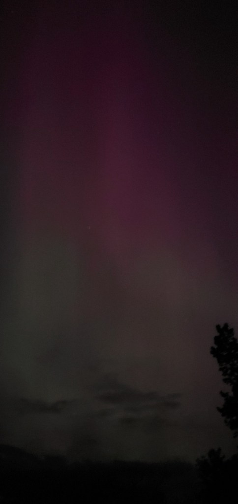 A[nother] gift from the Sun On May 11, 2024June 14, 2024 By ©️K.T. 2025In Aurora Borealis, Earth, Earthling, Geomagnetic Storm, Northern Lights, photograph, photography, planetary hospice, Sol, solar flares, Solar System, Sun Spots aurora borealis as experienced from the land i occupy, Michigan, North America, May 10th 2024 Share this: Click to email a link to a friend (Opens in new window) Email Click to share on Pocket (Opens in new window) Pocket Like Loading... Related