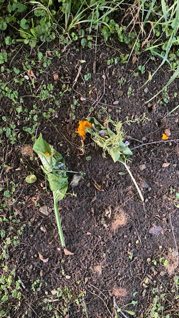 they were still warm but not breathing and limp — so, i went to gather leaves, flowers and herbs for their funerary, put on disposable gloves and then gently retrieved their tiny body — i immediately saw they were covered in mites, and then the mites began to overtake my gloves — i quickly, very quickly, bundled their body and placed it in the scrublands adjacent to my house;